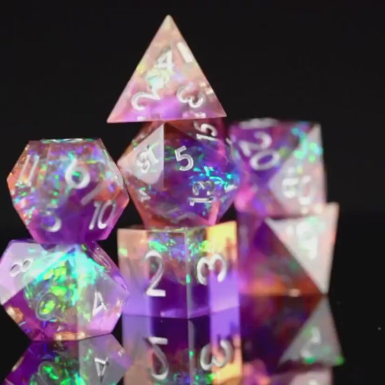 Prepare for liftoff with Cosmic Burst, a dazzling dice set that captures the explosive beauty of a supernova. Swirls of pink, purple, green, and blue glitter shimmer like stardust caught in motion, radiating the energy of the cosmos itself. Each roll streaks across your table like a shooting star, guiding your adventure through galaxies unknown. With Cosmic Burst, every game becomes an epic voyage among the stars—bold, brilliant, and unforgettable.