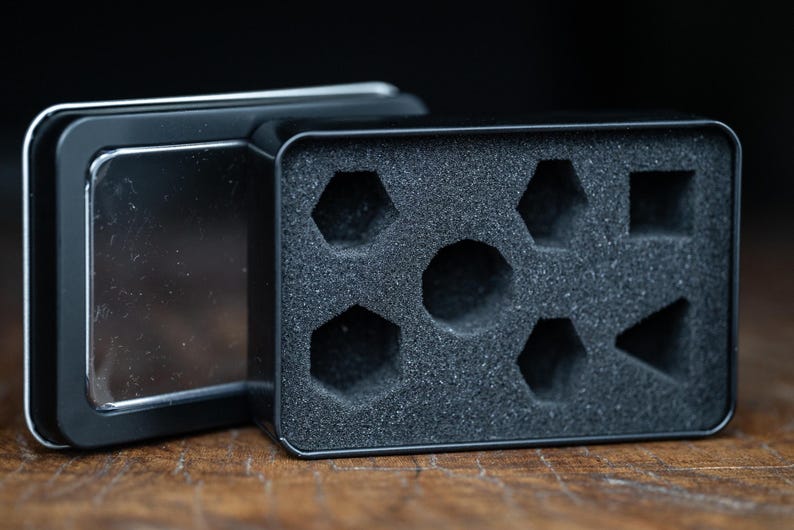Note to the wise - all dice sets are not the exact same. Because of their handcrafted nature, dice sets may vary slightly from the original picture. We do our best to ensure that the cores are centered, but cannot guarantee perfection. All sets are unique in their own way and we love them all.