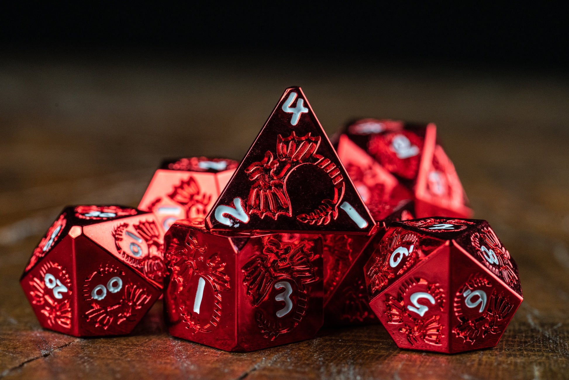 DnD dice sets: Dragon Blood Red Metal Dice Set: Premium Polyhedral DnD Dice for Adventurous Gaming