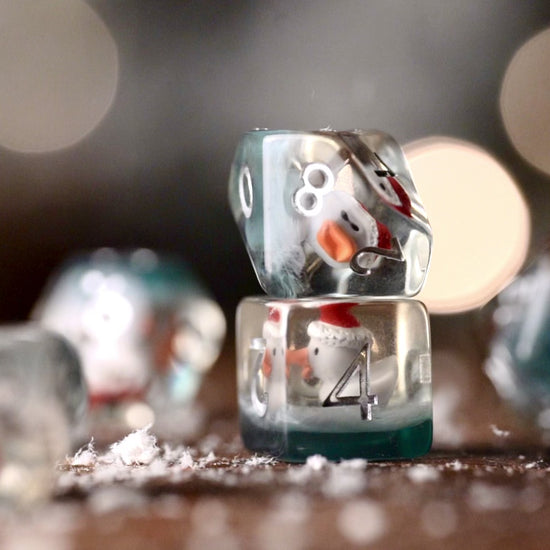 These festive Christmas Duck Dice bring a burst of holiday cheer to every campaign, featuring an adorable duck tucked inside each shimmering die. Swirled with joyful seasonal colors and a touch of winter sparkle, they feel like tiny ornaments ready for adventure. Each roll brings a smile as the merry little duck “quacks” along for the journey. Perfect for holiday one-shots, gifts, or collectors who love whimsical tabletop treasures, this set turns every session into a celebration. Bring warmth, laughter, and Christmas magic to your table with these charming duck-themed dice!